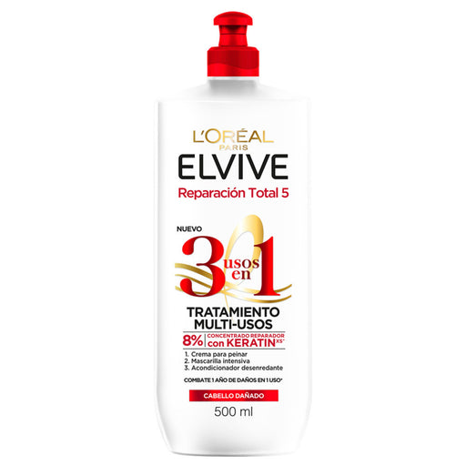 Descripción La Crema Elvive Multi-Usos Reparación Total 3 en 1 en su presentación de 500Ml esta diseñada para cabello dañado. Desenreda al instante...
